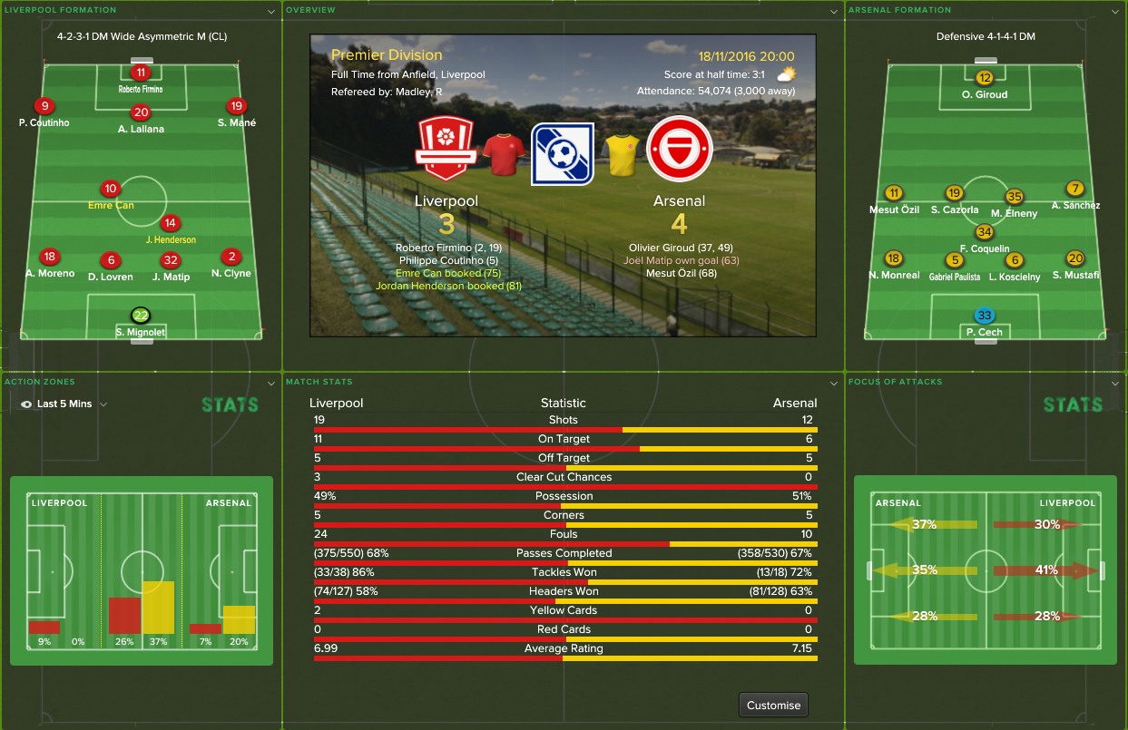 18/11/2016 Liverpool 3 - 4 Arsenal