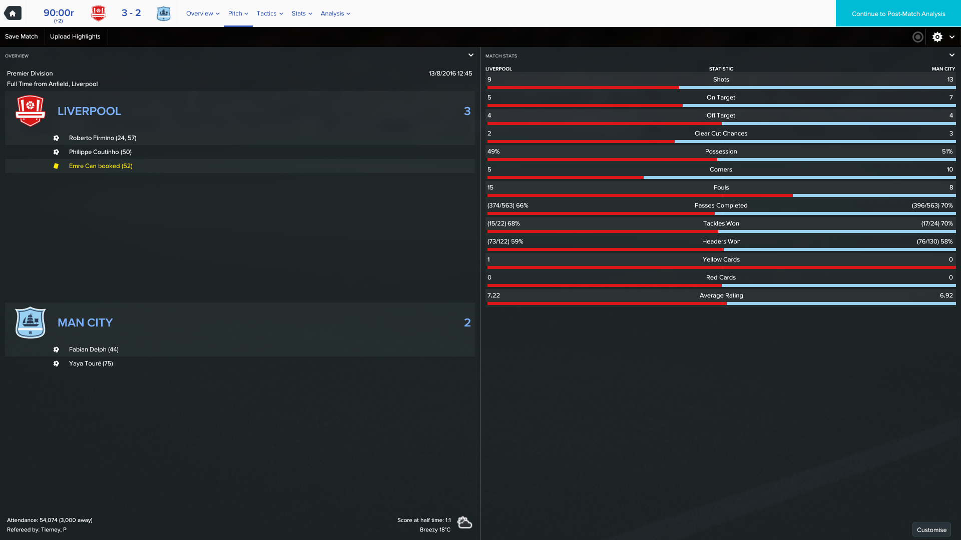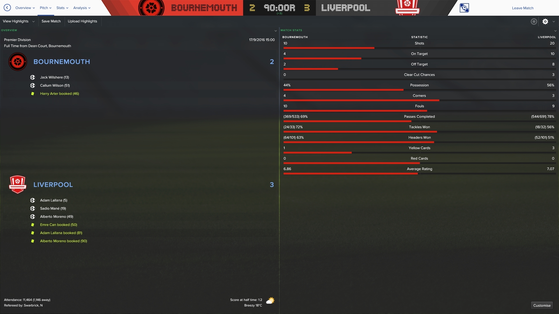 17/9/2016 Liverpool 3 - 2 Bournemouth, EPL