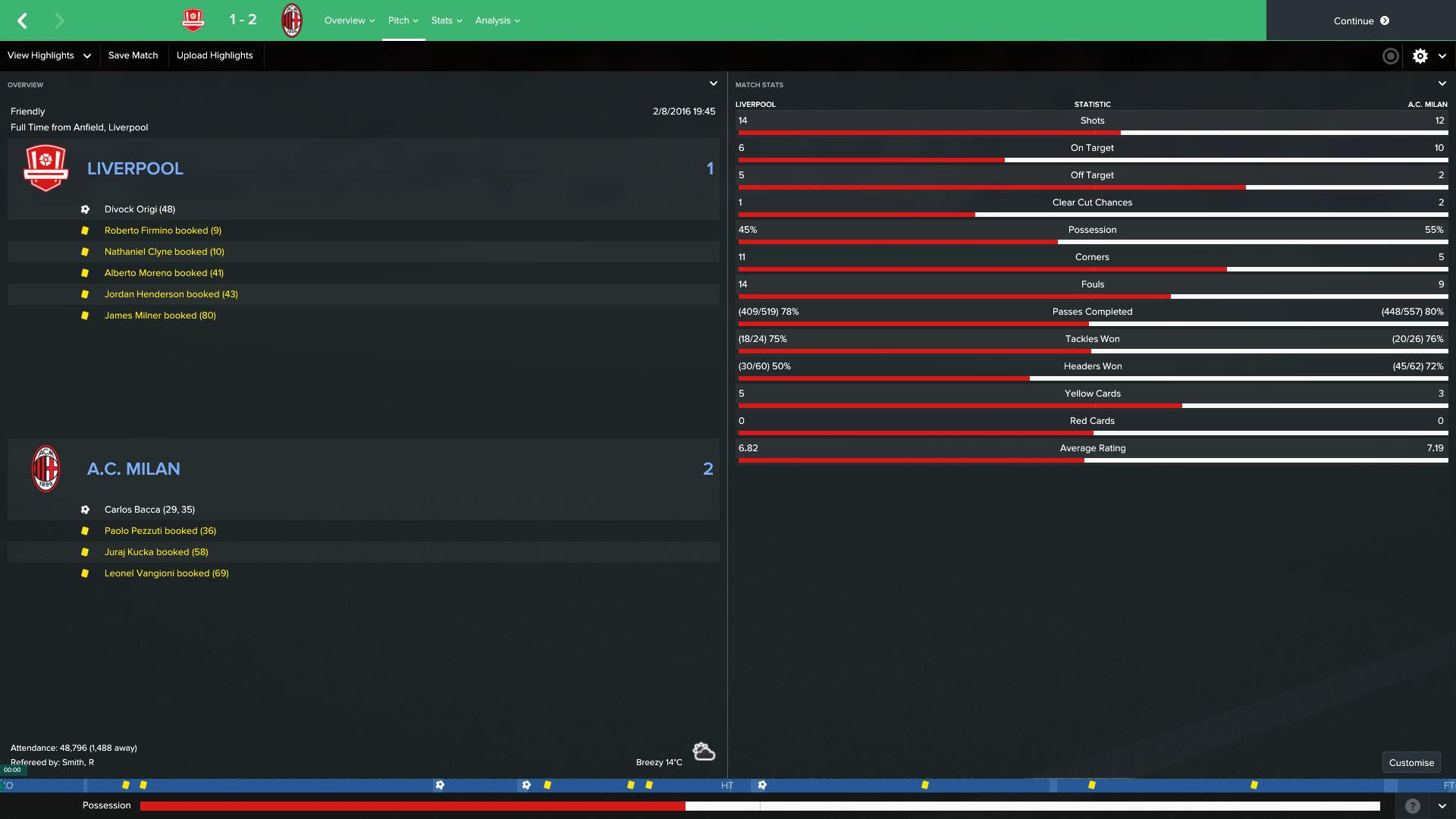 vs AC Milan (L 1- 2)