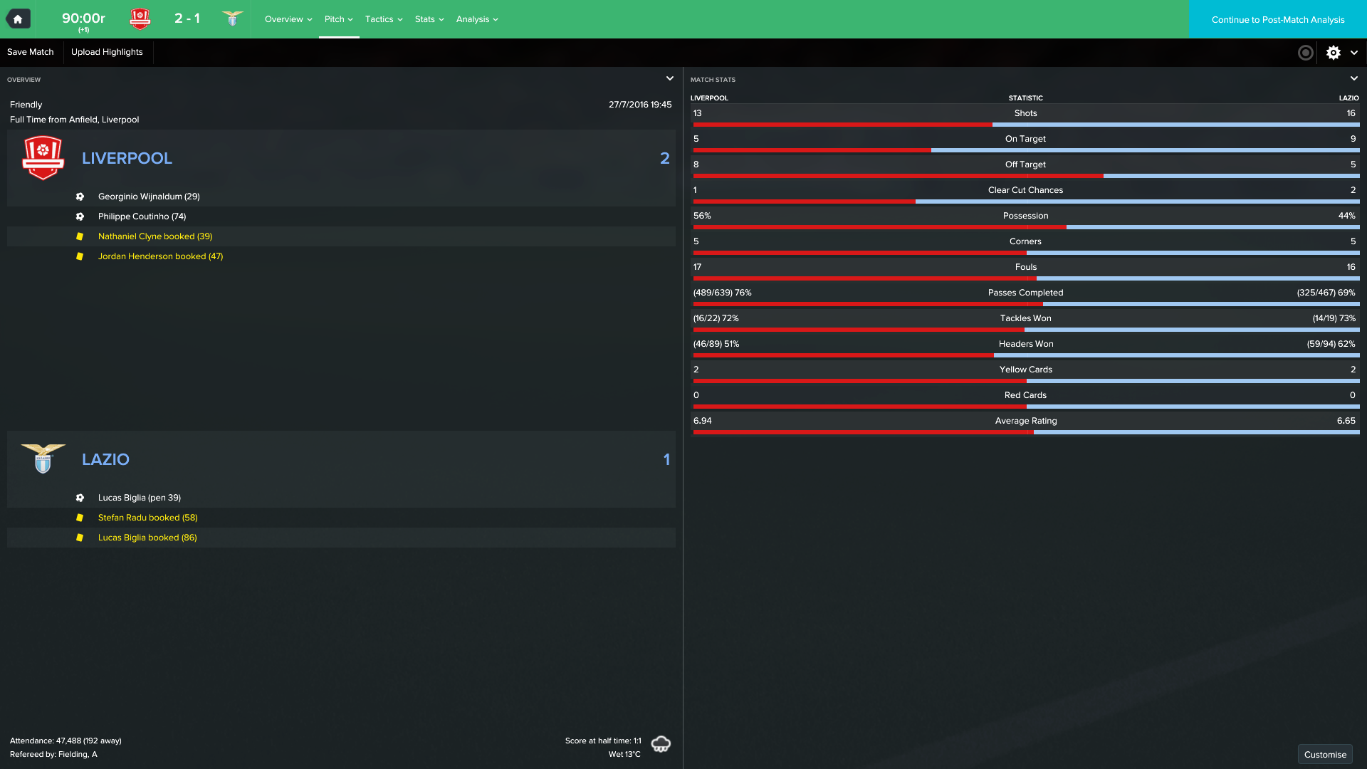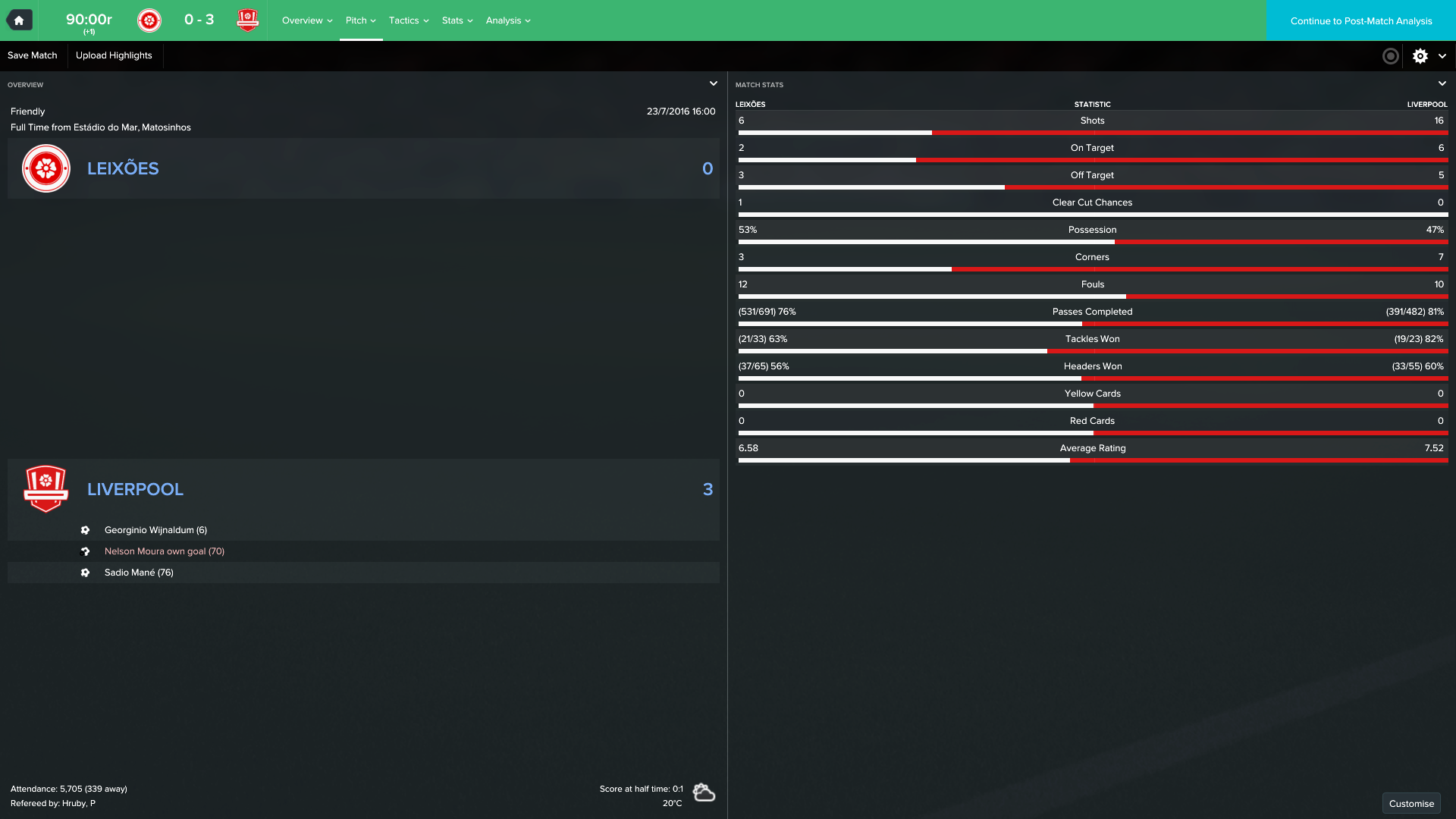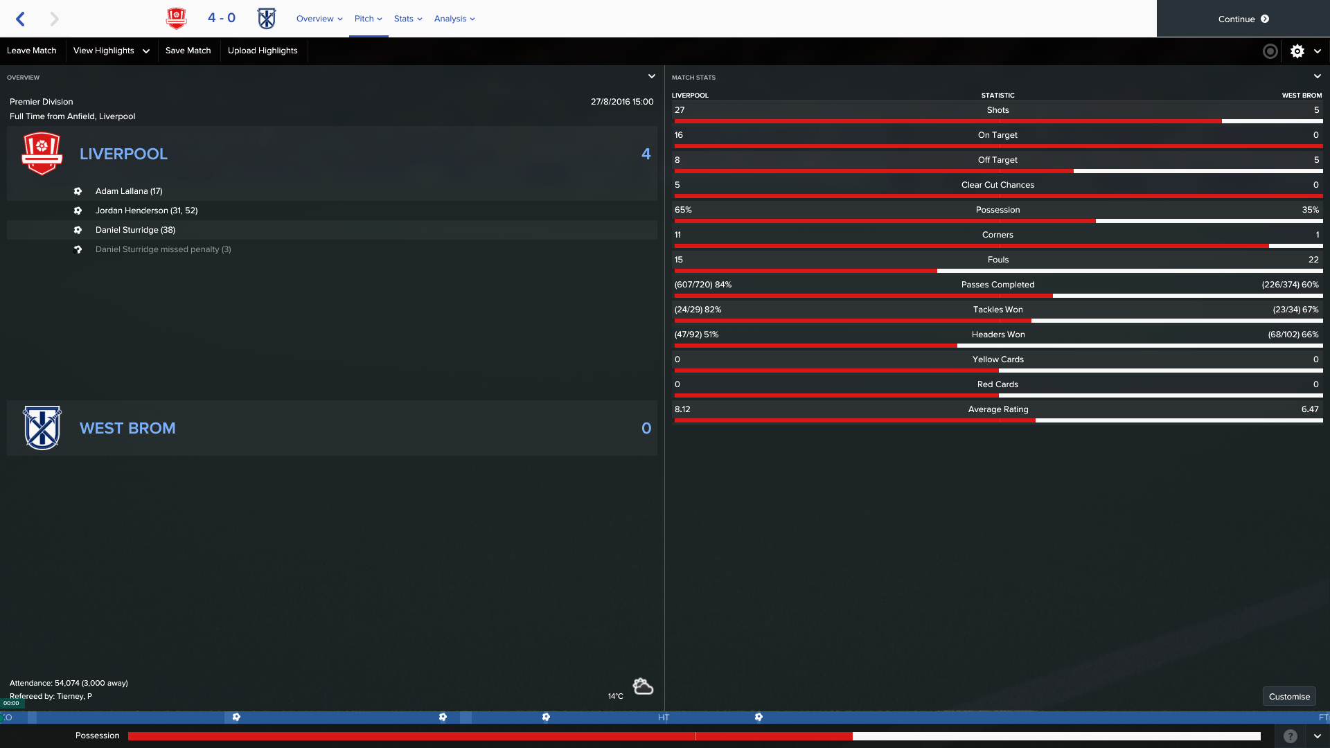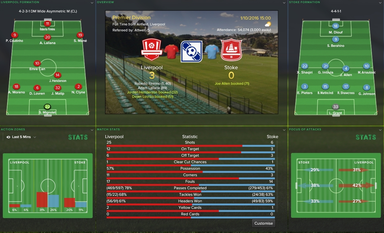 1/10/2016 Liverpool 3 - 0 Stoke, EPL