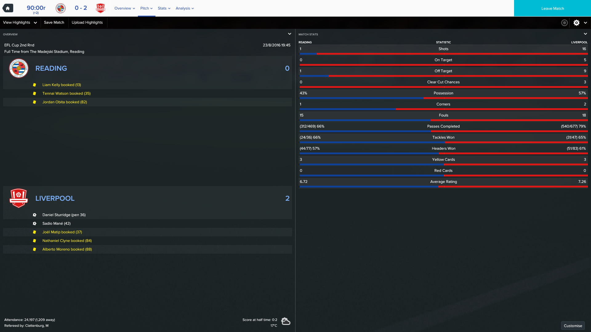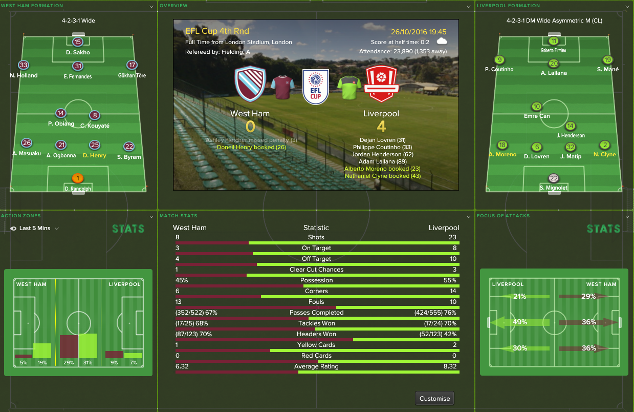 26/10/2016 Liverpool 4 - 0 West Ham, EFL Cup 4th Round