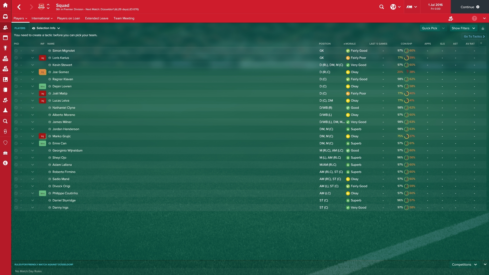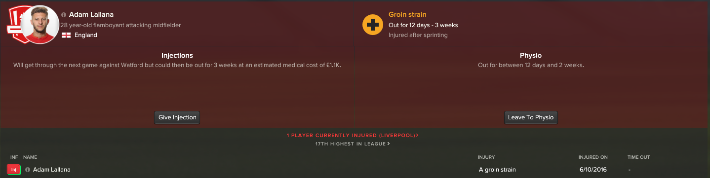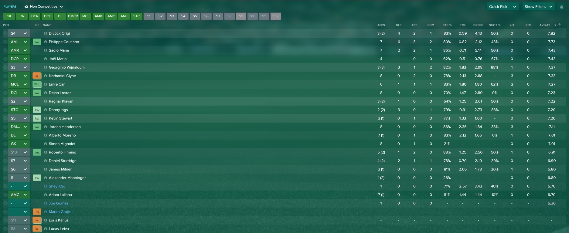 So you can see, the team is in a good condition. Most notably, the attacking sector of the team is very dominant with Coutinho, Firmino, Mane, Lallana and Sturridge.