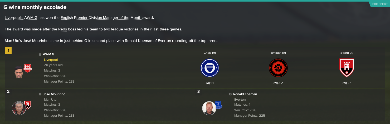 Won manager of the Month