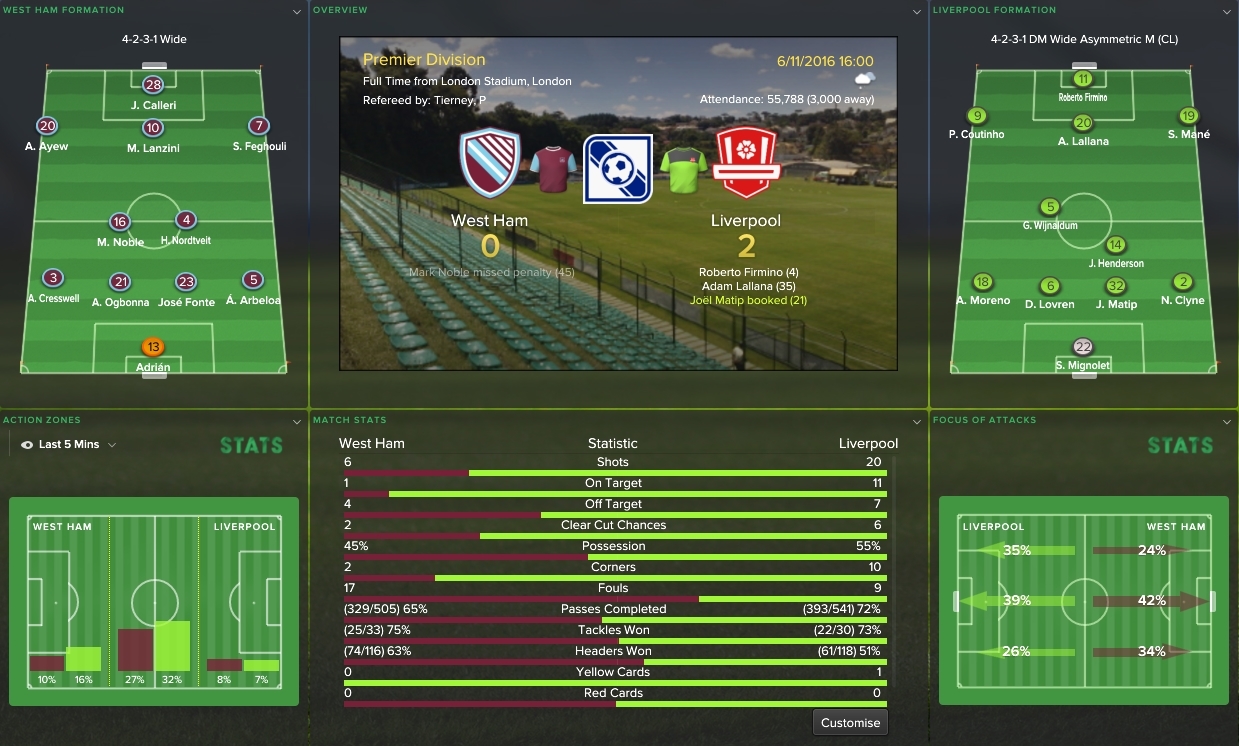 6/11/2016 Liverpool 2 - 0 West Ham