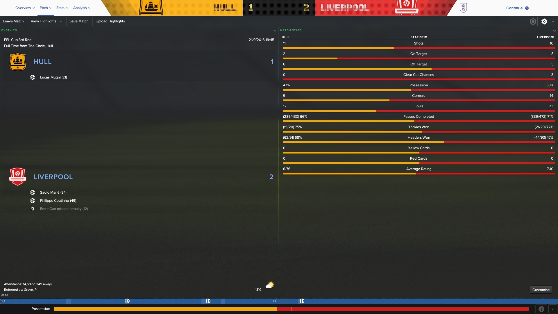 21/9/2016 Liverpool 2 - 1 Hull City, EFL Cup 3rd round/[h3]