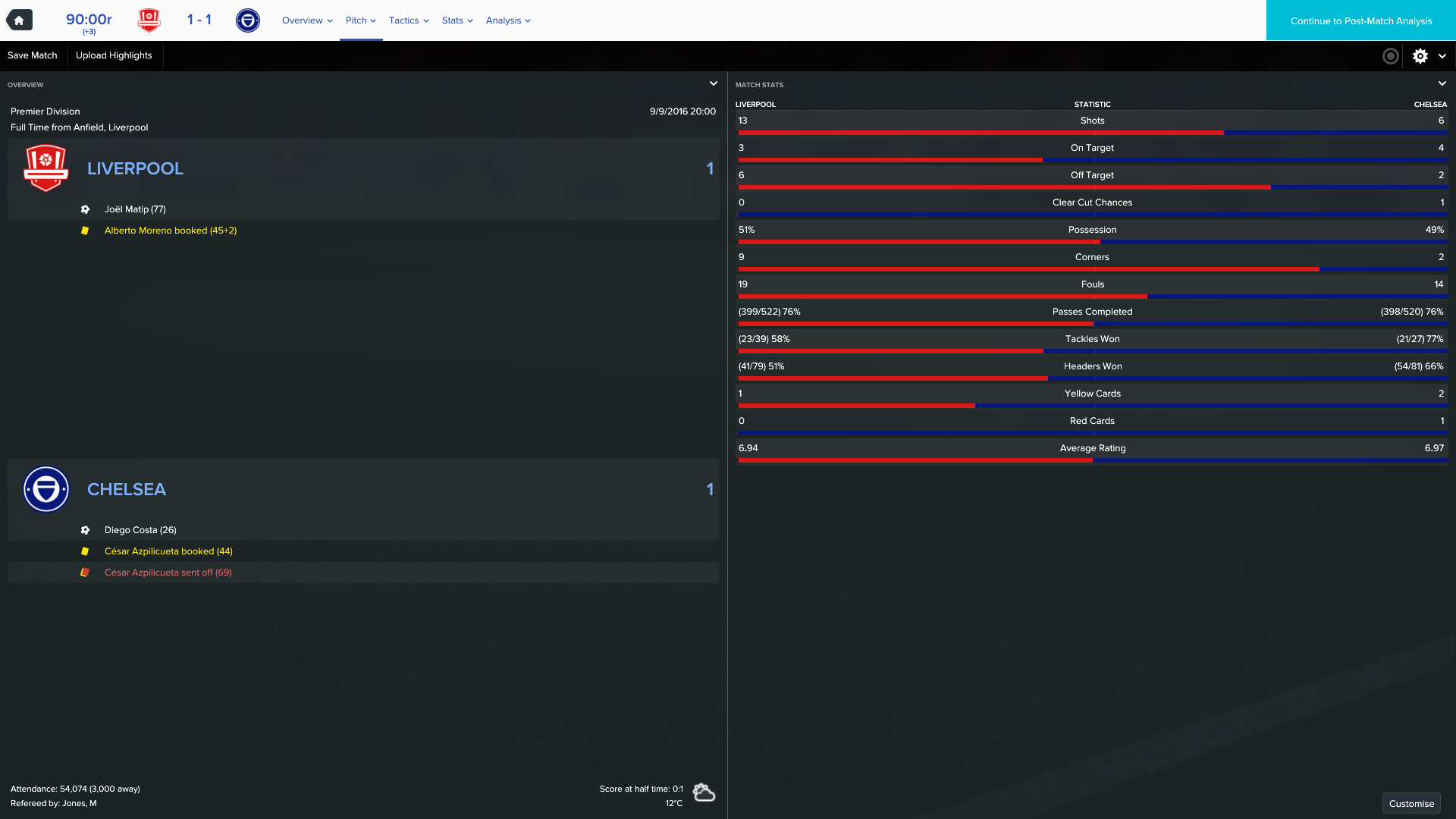 9/9/2016 Liverpool 1 - 1 Chelsea, EPL
