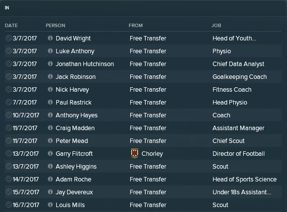 Into the recruitment team came five guys, four I wanted and one that I didn't. Out of the five, Peter Mead, Jonathan Hutchinson, Ashley Higgins and Louis Mills where the guys I brought in. For some reason or another, the chairman thought it would be a good idea to bring in former Blackburn man Garry Flitcroft as Director of Football. What does a Director of Football even do?