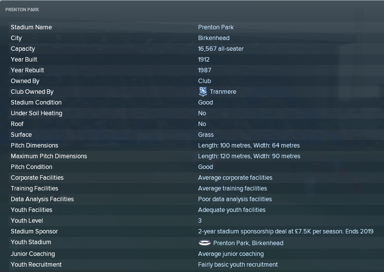 Facilities wise, we look ok but only that. Pretty much everything is either average or adequate. I have no idea how this compares to the other teams in the league but I'd imagine we'd be one of the best. I will definitely be looking to improve this if we can, especially the youth recruitment. If I can improve on the youth side of things then my plan is to bring young players through into the first team.