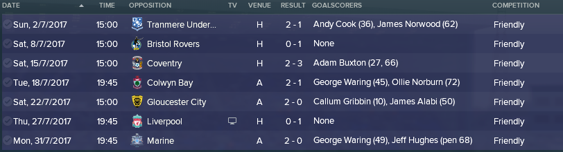 Not a bad pre-season at all, you've been quite competitive in each game against tougher opposition and beaten the sides you expect to. Suggests to me that a successful season is ahead.
