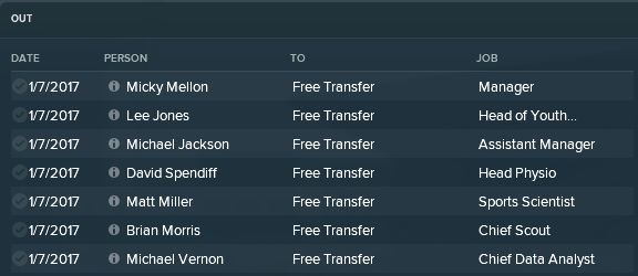 Then the hard work began. Recruiting for every single staff role is hard work let me tell you. In terms of the coaching team in came Craig Madden, David Wright, Jack Robinson, Nick Harvey and Anthony Hayes. I did have plans to bring in a tactics specialist too but the board wouldn't allow me to hire anymore coaches due to budget restrictions.