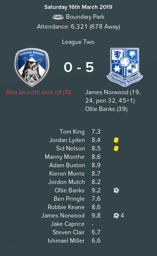 The day after we confirmed a deal with Oldham which saw Scott Davies move to Boundary Park for a fee or 4.7k, leaving us with Tom King and James Shea as our goalkeeping options.