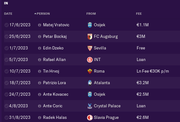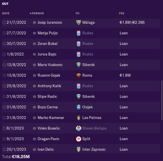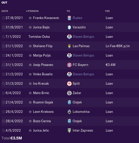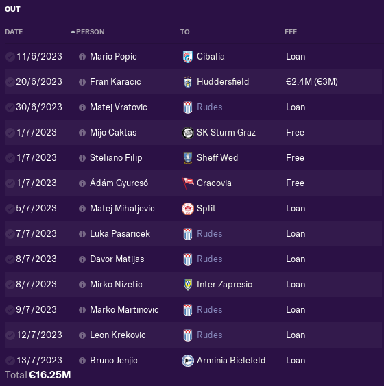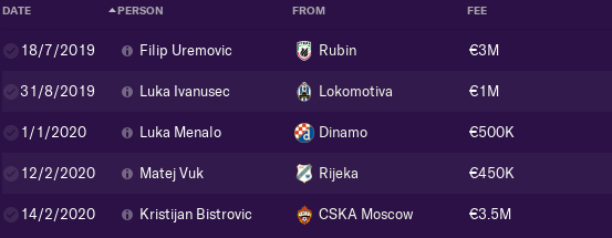 We sold RB Juranovic, 2 CB Uremovic and Vucur, Winger Luka Menalo and DM Kristijan Bistrovic. Also chairman sold 19yo ST to Rome Rusmin Gojak.