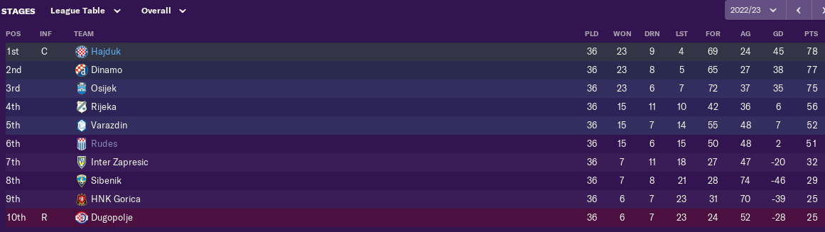 In the league we did not make big progress we are fighting now for 3rd place because Dinamo also overtook us and season is done wit anger and tough feelings, we tried everything but couldn't make any better. The ne Champion is NK OSIJEK, first ever title for them.