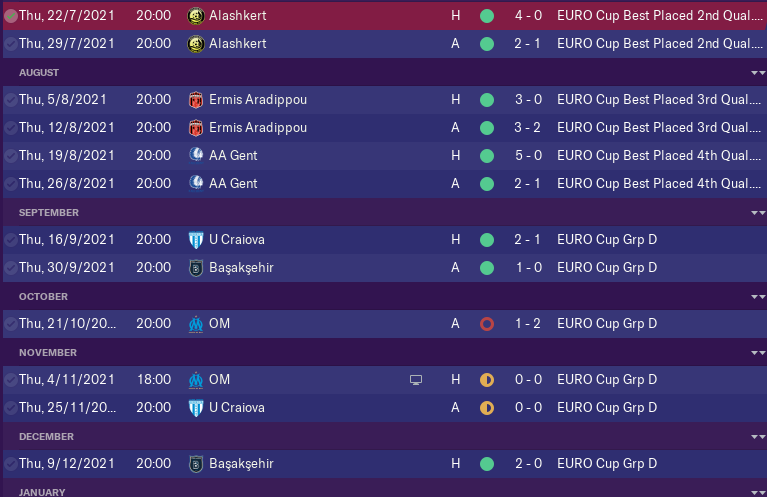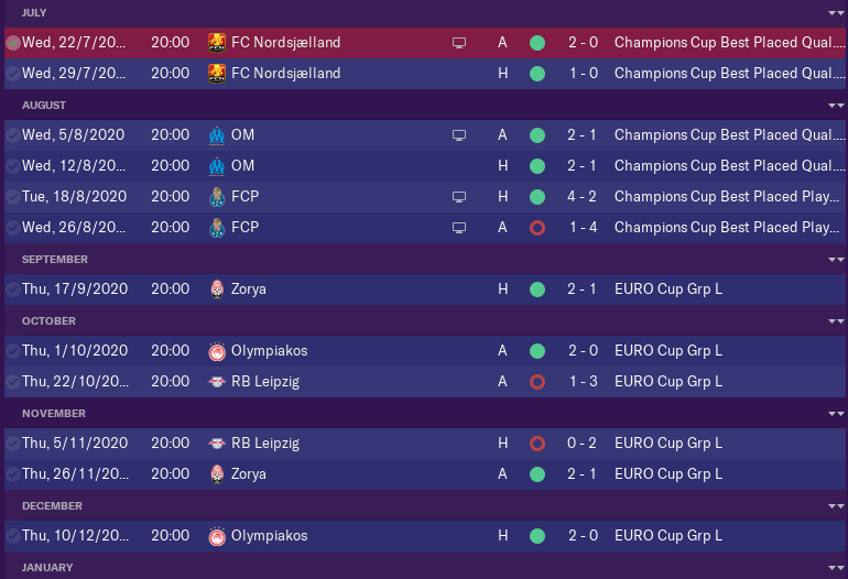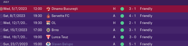 As we finished 3rd last season we qualified automaticly for Europa League so the season did not start so early for us this season. Most of the transfers have been done 2 months before the season so in the friendlies i had time to combine that in fantastic groupe of players.