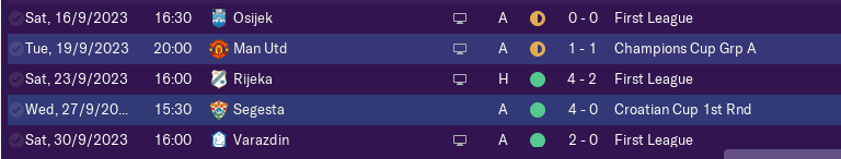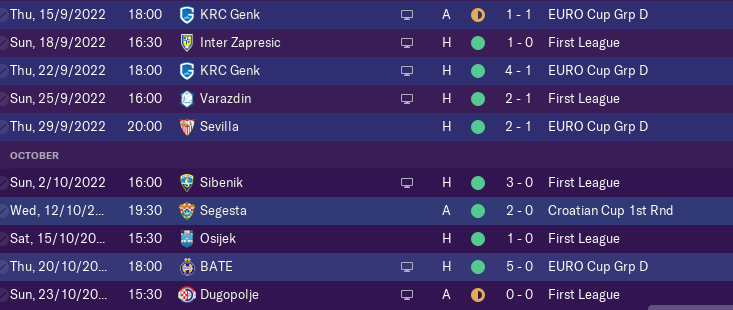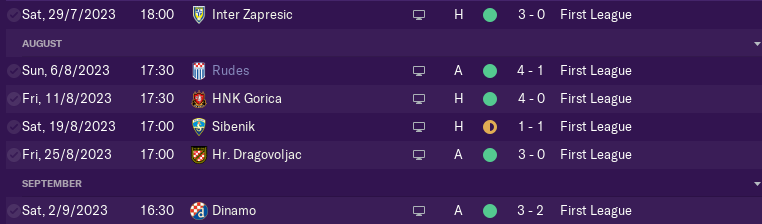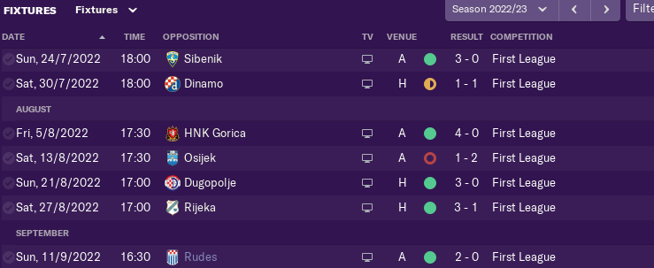 Season started very good with 5W and 1D in first 6 games in the league only draw was against NK Sibenik (who is my dark horse for the whole game).