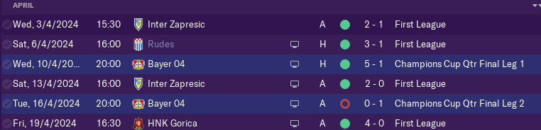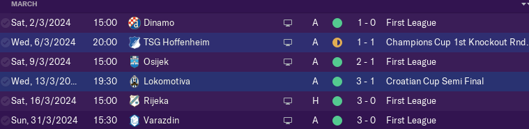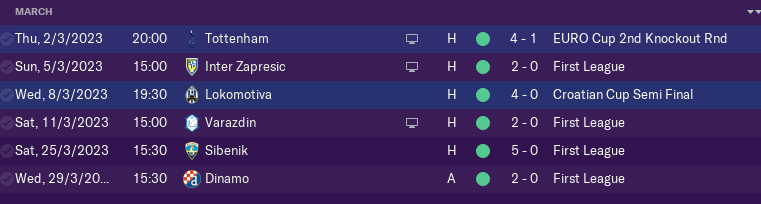 March brought us first game against Dinamo in Zagreb at Maksimir and we beat them 1-0 before we leave Croatia for away game against Hoffenheim.