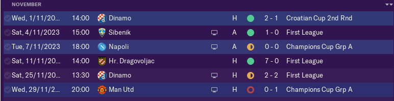 Very important victory on Dinamo before international breake 3-2 in Zagreb. And at this point we draw a group for Champions League and it was Man United, Napoli, Shakhtar and Hajduk. Very tough groupe.