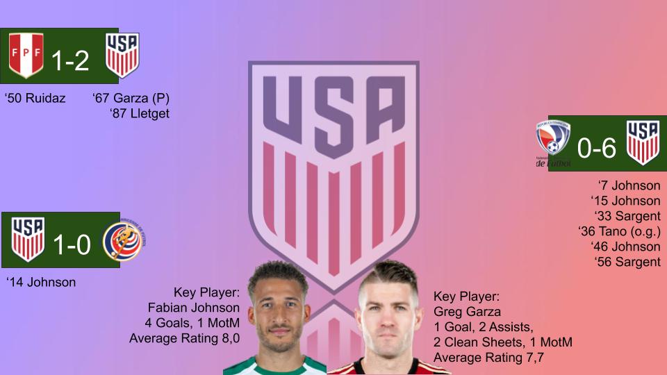 The faith put in Sargent paid off as he, after just 7 minutes of play, sent Fabian Johnson away. Johnson made no mistake, beat the last defender and curled the ball past the goalkeeper. The Gladbach winger would also be responsible for doubling our lead. DeAndre Yedlin bombed down the wing and searched for Sargent with a cross. The cross went over Sargent’s head and fell in front of the feet of Johnson. Johnson took a touch and smashed the ball in at the near post.