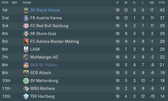 Both teams showed various versions of the 4-4-2 formation, with Chatelain sticking to his low-block 4-4-2 against a 4-2-2-2 DM formation. With Rapid being unbeaten at this point, they were the obvious favorites, and they had a reason behind it - Their team is the best defensive team in the league, by a mile. They conceded only six goals in nine league games while scoring nine. They kept a clean sheet in three various occasions, five if cup games are included. Austria Vienna enjoyed a strong start as well but conceded two losses in the same number of games.
