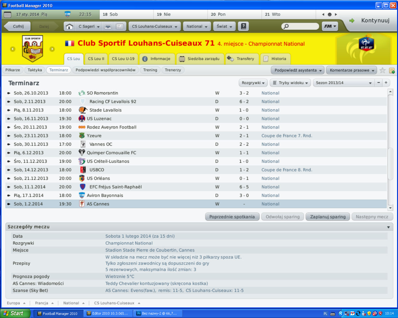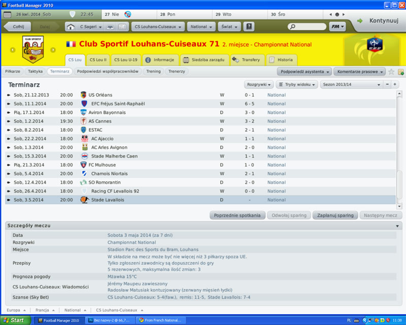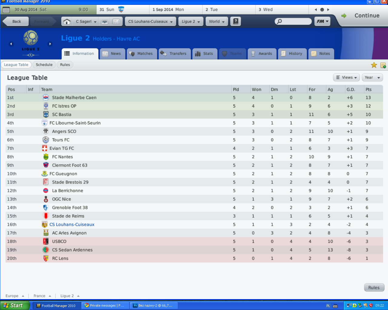 2 games won out of 2 thats brilliant and what is even better i have the same amount of points as AS Cannes which is 3rd but next game is against them so i need to win or atleast to draw but last what i want is to lose because again i will have gap between me and them so i dont want that.