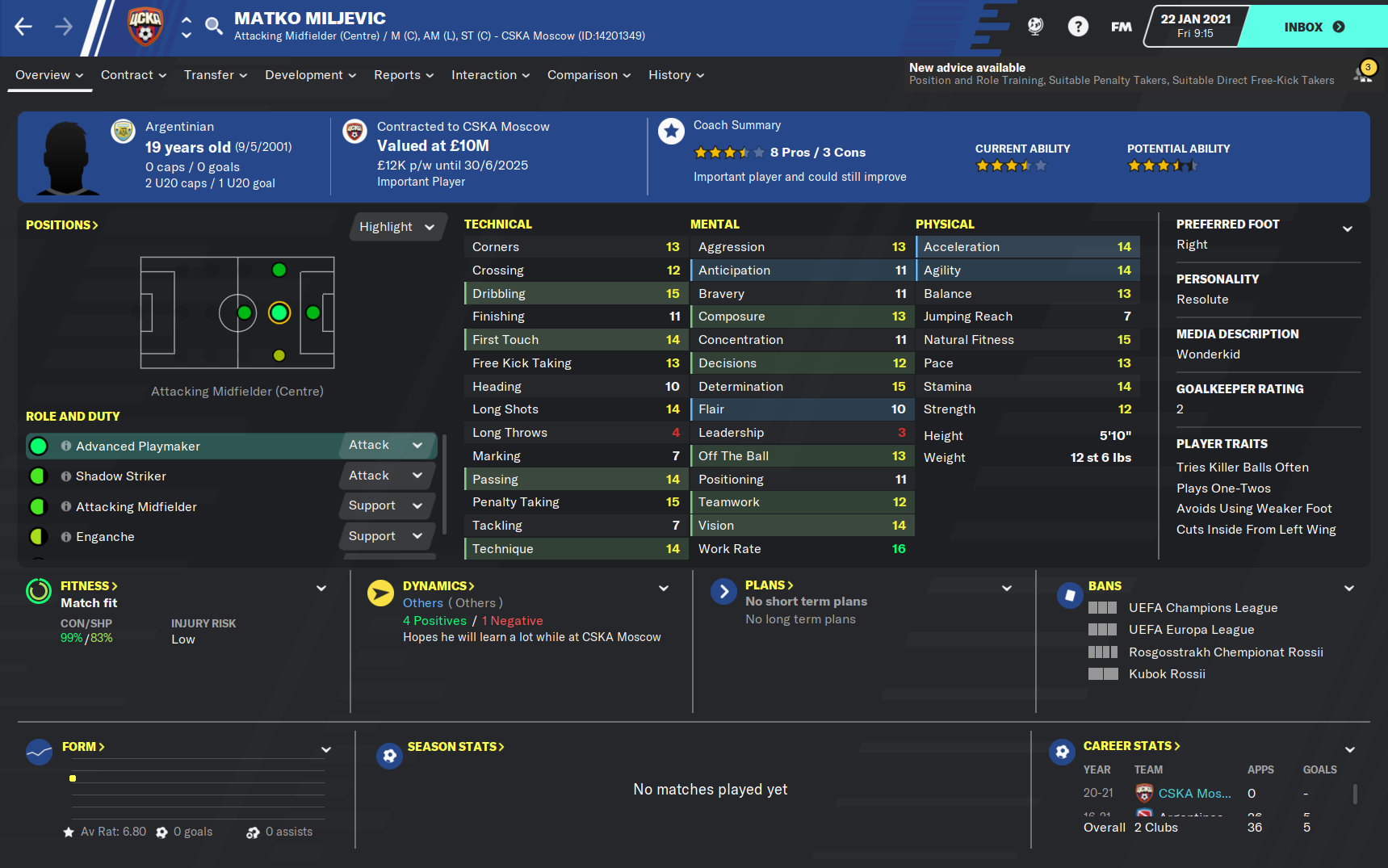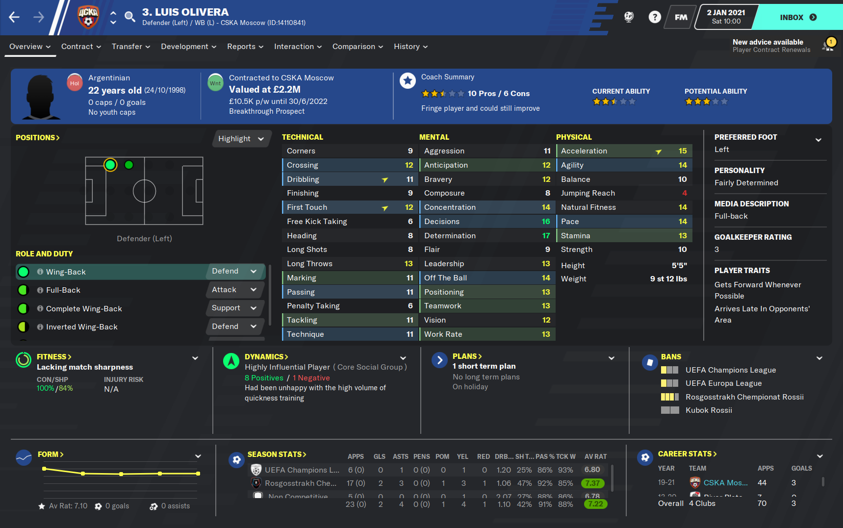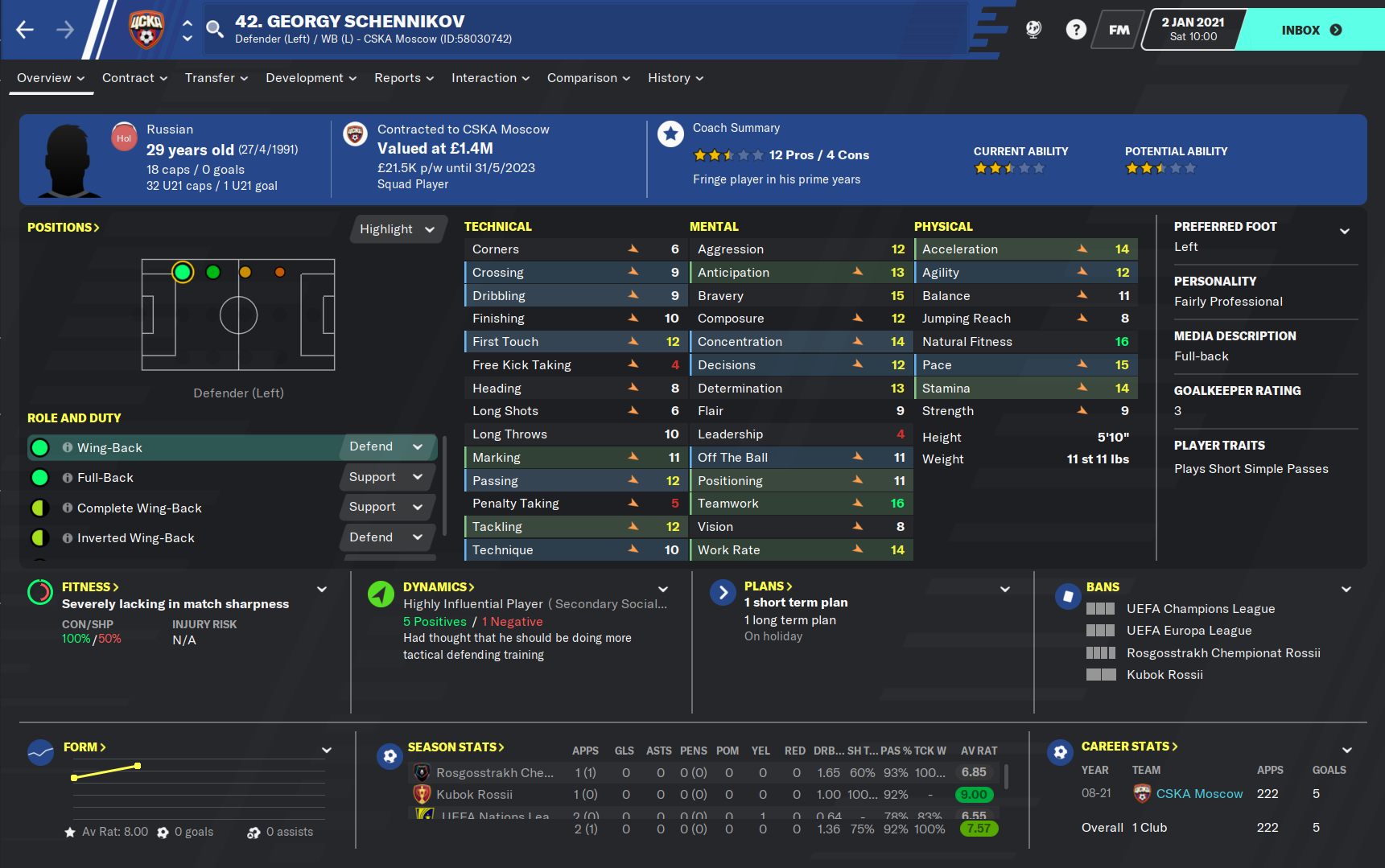 The two other potential players both have major issues that could prevent them from being able to star in the rest of this season. Danila Yanov was the backup to Vlasic last season and impressed, scoring twice and assisting twice in his seventeen games, although fourteen of those matches came from the bench. However, Yanov was this year allowed to go on loan to try and further his gametime and hopefully his development. But the loan isn’t seemingly going to plan with the playmaker scoring just three goals in twenty-seven games for second division strugglers Fakel. The loan is expected to be terminated this window but whether Yanov will be able to replace the influence of Vlasic after what must have been a confidence knocking six months, is yet to be seen.