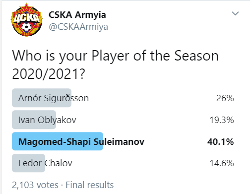 The final award goes to Magomed-Shapi Suleimanov, who wins the Fans Player of the Season award with 40.1% of the votes on the poll we put on twitter.