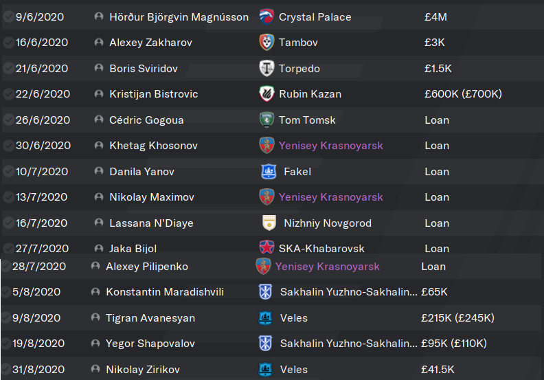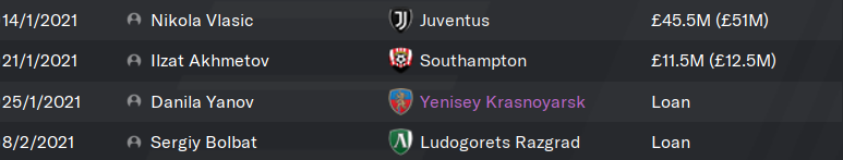 The other major outgoing player was Ilzat Akhmetov, who moved to the South coast of England to join Southampton. The midfielder, who has currently struggled to adapt to the English Premier League, joined the English side for £12,500,000 giving Luke a large amount of money to add to his side.