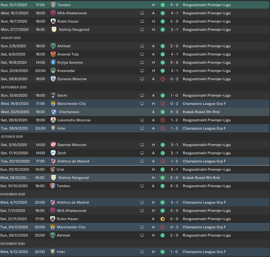 Back in September, we also witnessed our last loss in domestic competition with Lokomotiv Moscow beating us 2-1. After a tough month that saw us win just two games, not many were expecting the run we would then go on.
