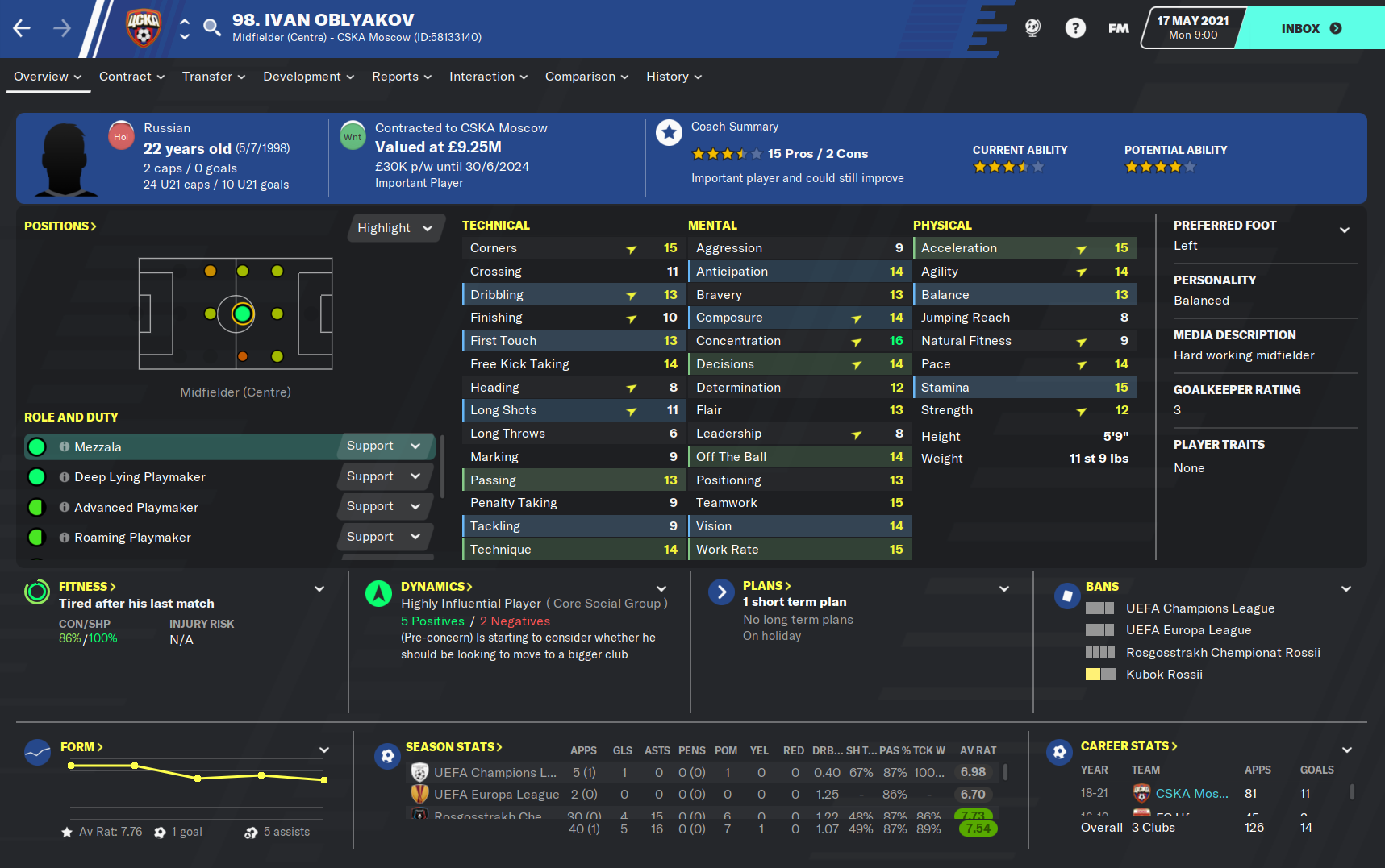 Still aged 22, Ivan was finally rewarded with his first Russian international cap this season and his impressive performances at club level are likely to keep him in the country's national team plans for many a season to come.