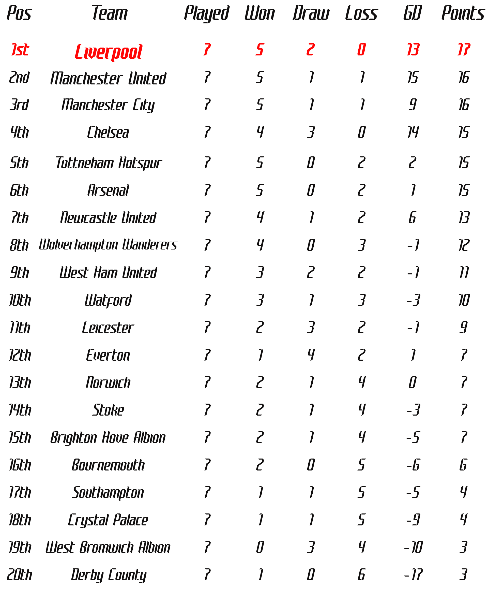 Liverpool go into the game in second place, only behind top of the table Manchester United on goal difference. Everton on the other hand sit thirteenth, winning just one of their opening six.