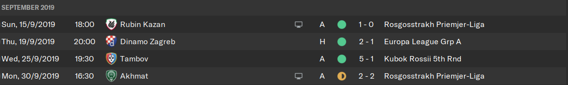 Maksim Smirnov - Seven minutes. That’s what separates us from having the perfect month of September. Wins against Rubin Kazan, Dinamo Zagreb and Tambov, we threw away a two goal lead at Akhmat to draw the game in the final few minutes. Let's take a look at the month in review.