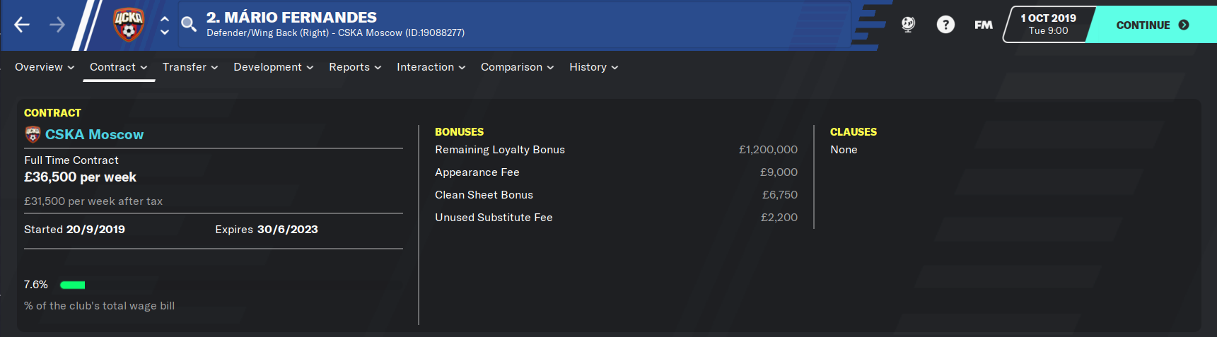 Vadik Vassily - Another man we can’t forget to mention this month, Mário Fernandes has signed a new contract with the club following interest from Manchester United. The deal is reported to keep Fernandes wage at £36,500 a week, but he does now have an extra year on his deal, taking his contract through to 2023, which will be his tenth year at the club. He remains our highest paid player, but has proven over time it is well deserved.