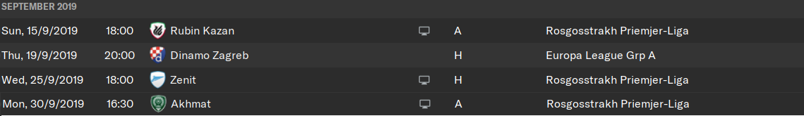 Maksim Smirnov - Looking ahead to next month, we will play a number of games including our first Europa League game of the season. To start the month we travel to Rubin Kazan, before two massive home matches against Dinamo Zagreb in the Europa League, before welcoming Zenit in the league. We close the month out with an away fixture against Akhmat. What do we expect from these fixtures?