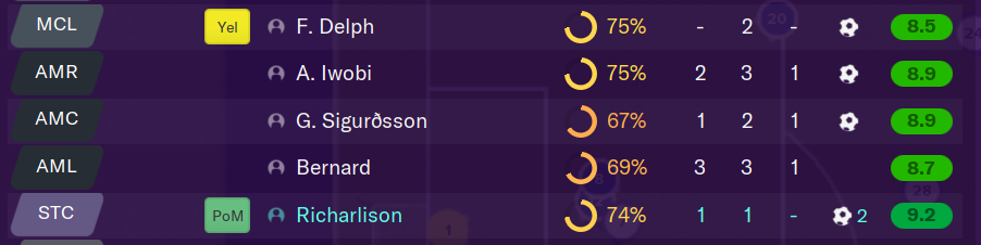 In truth it was a poor match, highlighted by Gudmundsson getting MOTM with only a 7.1 rating (equalled by Alberto, but for some reason the Burnley man was favoured). The match ends in a dour 0 – 0. If we had put away our chances in these close games this season, we would be comfortably top of the league. As it is, more silly points dropped – though I start to wonder if I need a better shooting coach…