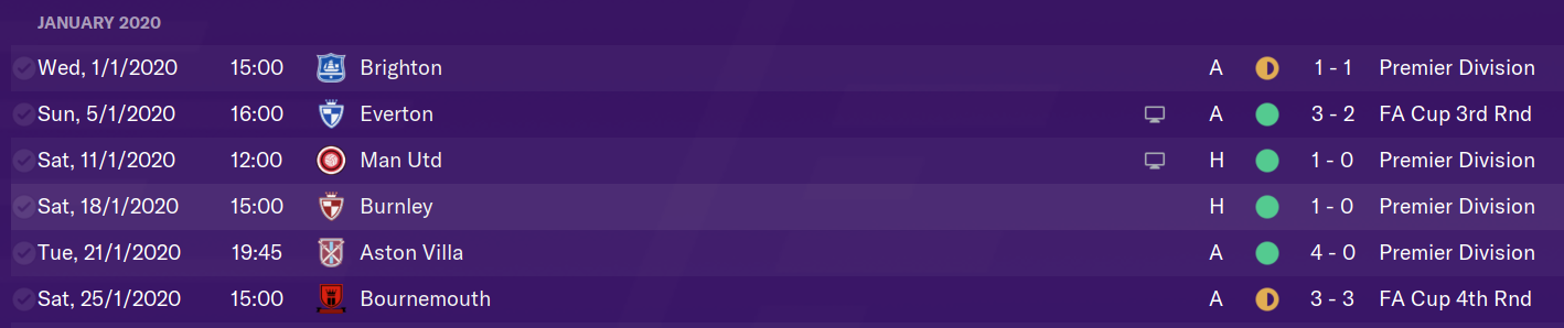 Join me next time as we head into February, where we have 4 Premier League fixtures, an FA Cup replay, and the first leg of our Champions League First Knockout round match against some other Italian opponents: Inter Milan.
