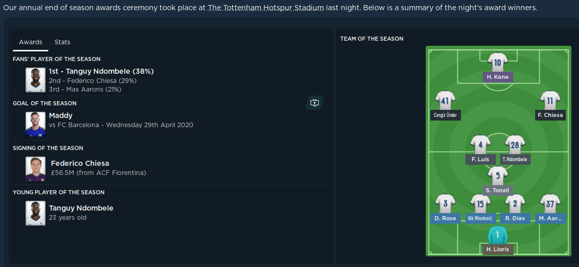 On a positive not as well, N’Dombele and Kane made the team of the year, so that’s always good. After our game against PSG I’ll be making an entire chapter dedicated to player evaluation as we wind up #theGrind in its first season.