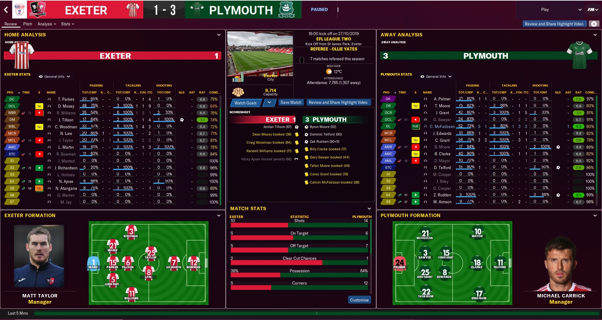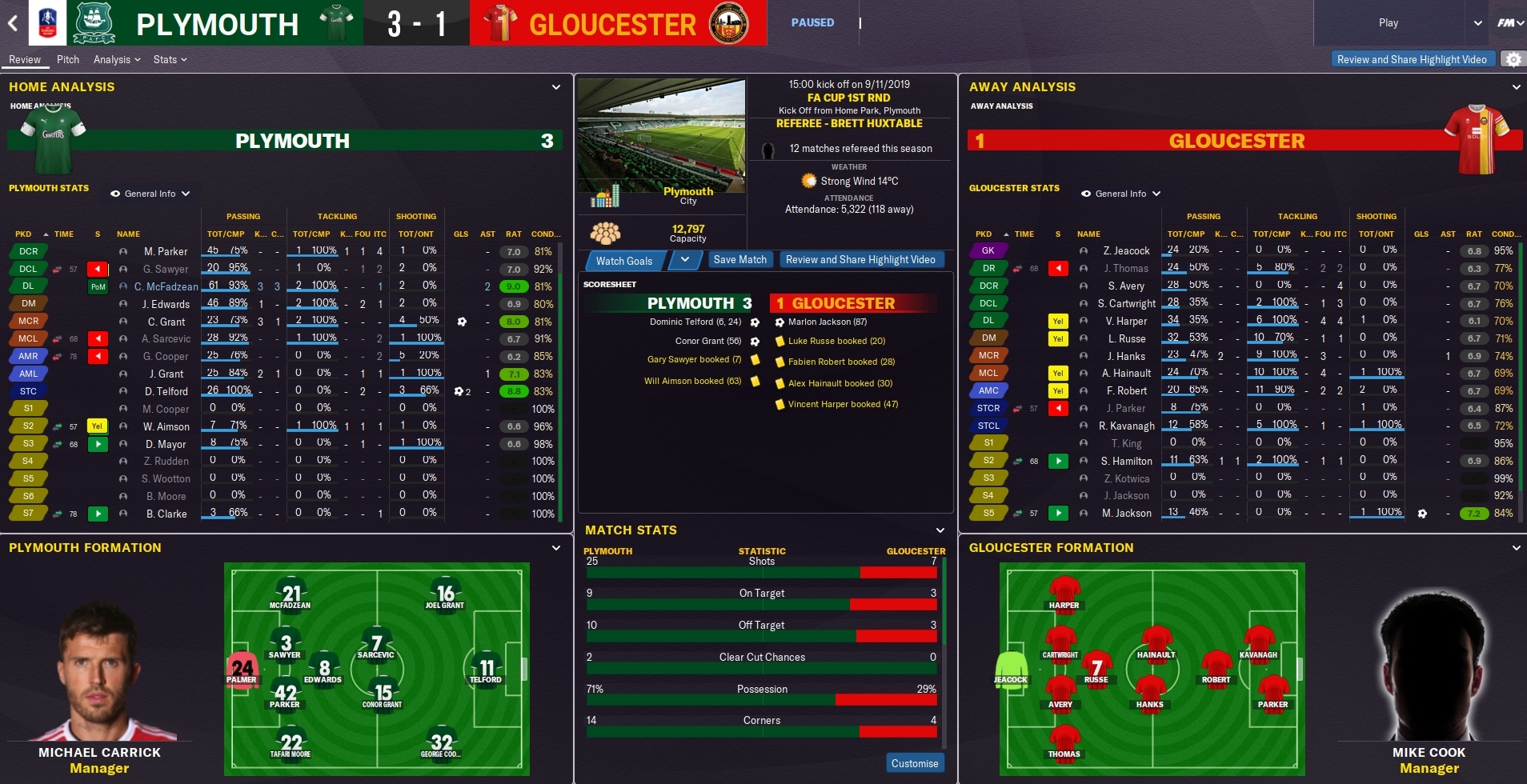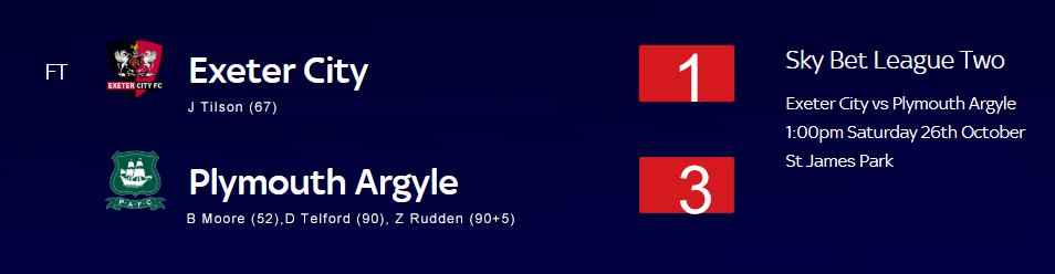 The scoring would begin six minutes in when Telford would score his first of two off of a volley into the net. Early on it was Argyle match to lose. He would end of scoring his second a little while later in the twenty-fourth minute.
