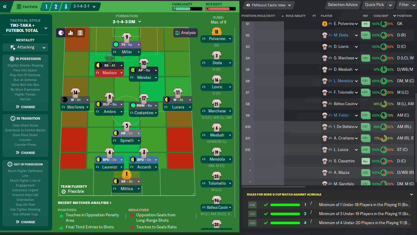 Il Maestro had a lot of work, to analyze the market, find players who adapt to their philosophy, accept the club's salary cap and still accept to play Serie D, having a total of 43 purchases and 10 sales, including players for the main team and also for the base, which was part of their project.