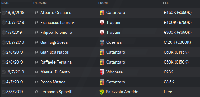 The other purchases that we can highlight are: Matheus Cassini, former wonderkid of Brazil and who has played for Palermo in a recent period; Will Miler the former striker of Tottenham and Burton, the Italian wonderkids of 17 years Filippo Tolomello and Francesco Laurenzi, beyond the wonder Italian striker of 16 years Alberto Cristiano, that promises to have many chances in the team throughout the season, also the former fullback of Milan, Parma and Sampdoria with a big experience with his 34 years that will help young players of