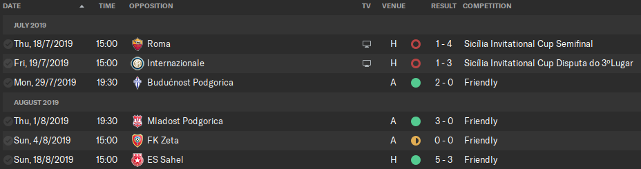 And this is the summary of Palermo's pre-season 2019. The next games will be against: