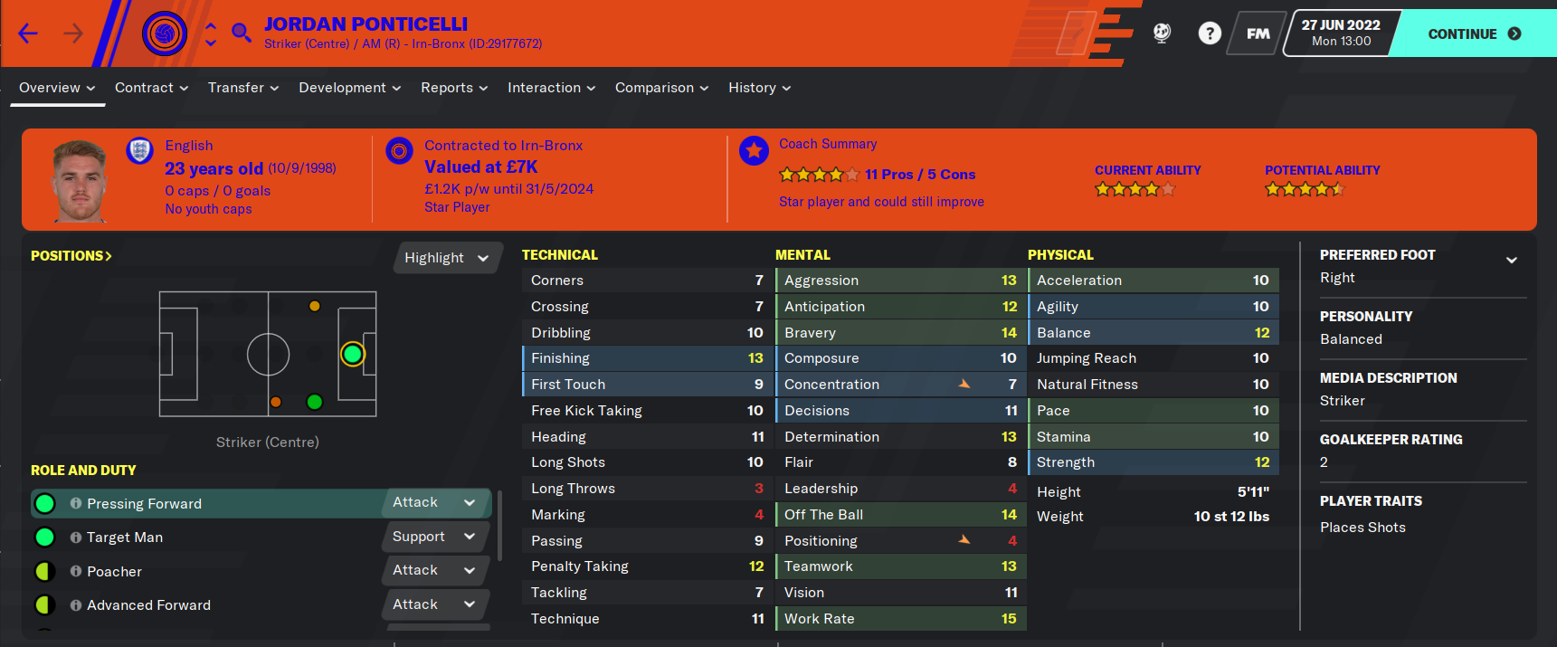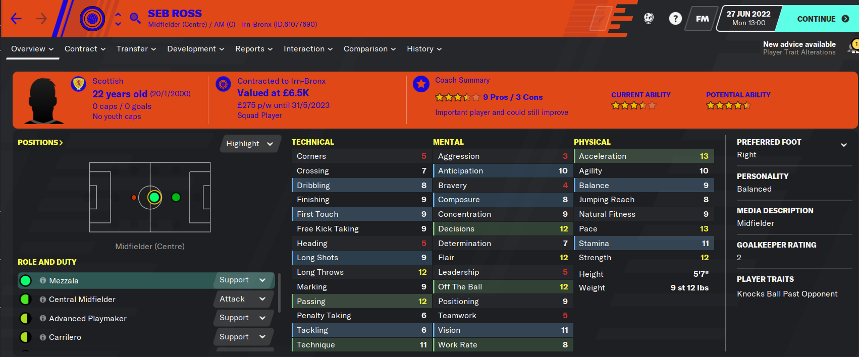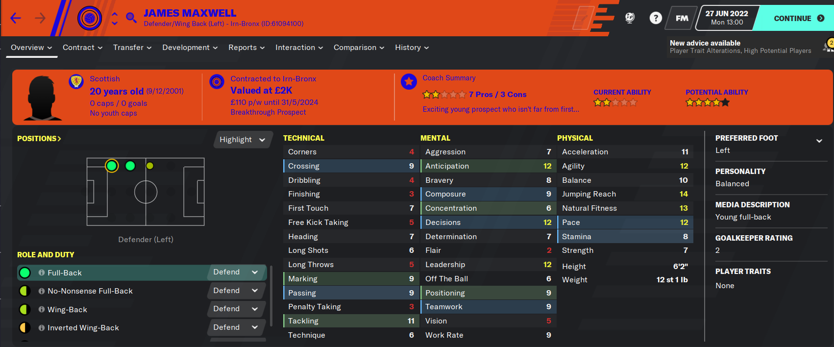 Gordon O’Halloran had 26 assists in 31 under 18 games, when I noticed he was the 4th best midfielder in the squad, according to our assistant. He was quickly called up and placed on the bench, ending the season with two start’s and ten appearances from the bench netting twice and assisting once. I am very excited to see him leading us to glory in a few years time!