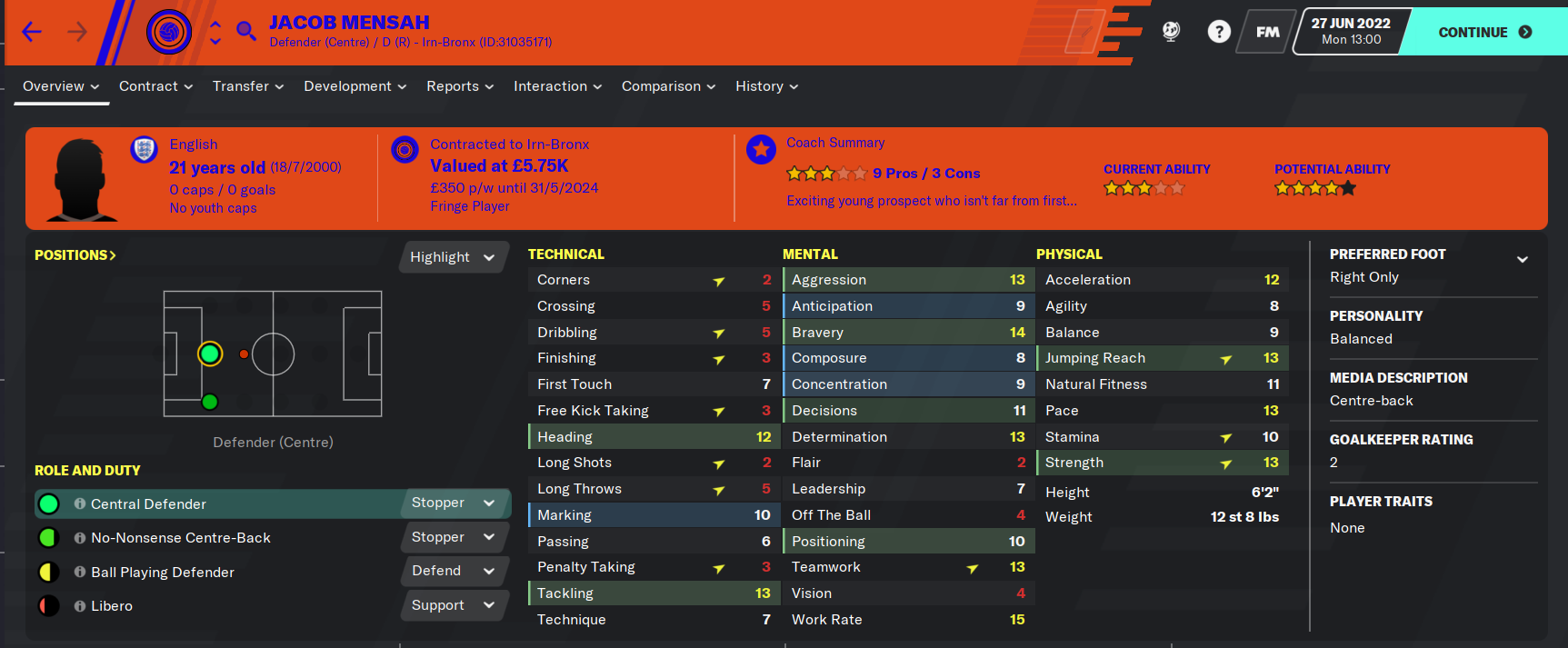 Jacob Mensah comes in as our back up center back as a free transfer from English League Two side Bolton. Still aged 21, Mensah has a lot of potential about him and comes in at a reasonable wage, making the deal a no-brainer. He will remain as our third choice for now, with Lyons and Louis Lomas have formed a strong partnership at the back.