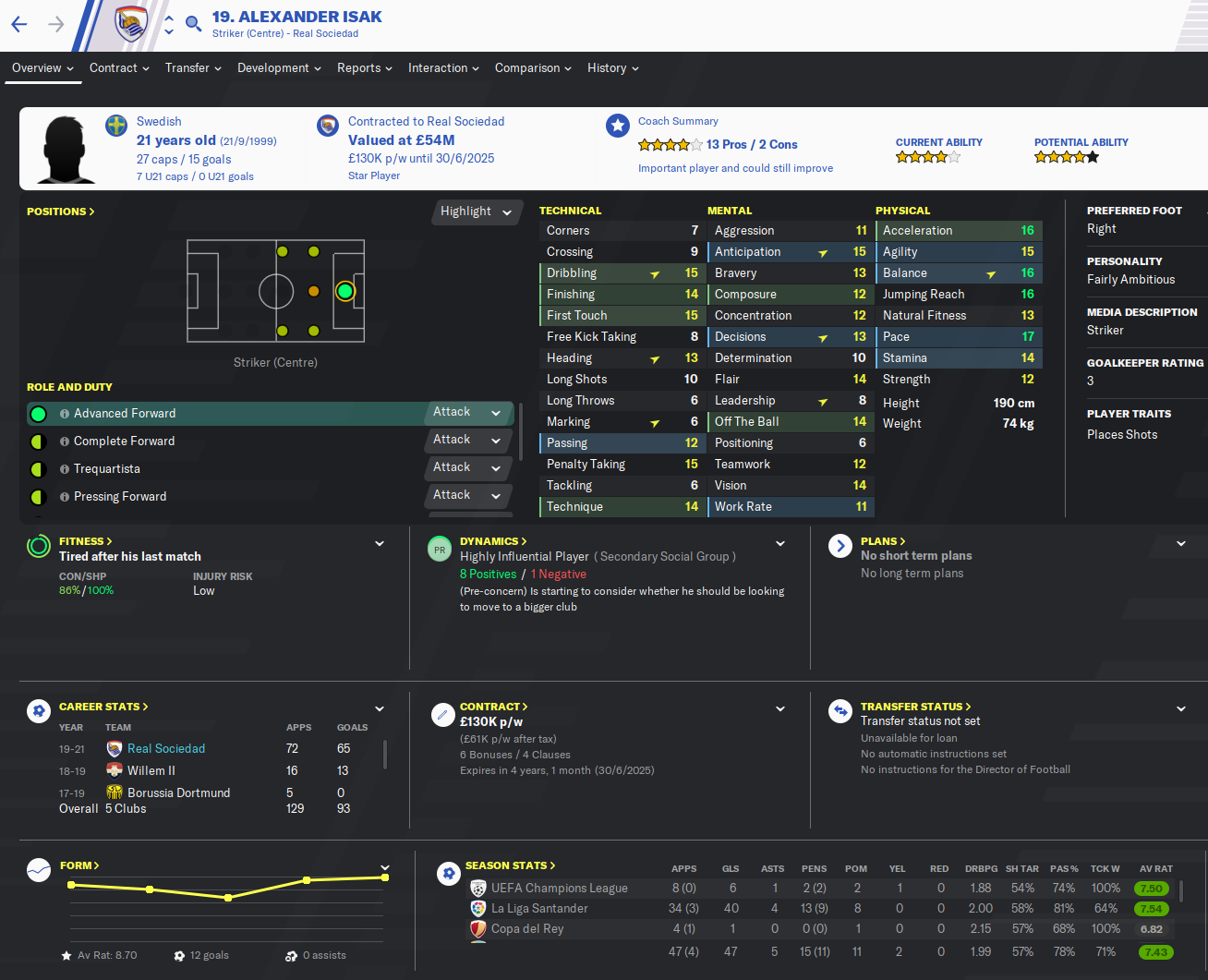 Alexander Isak 34games 34goals 4assist - 7.61 AVR