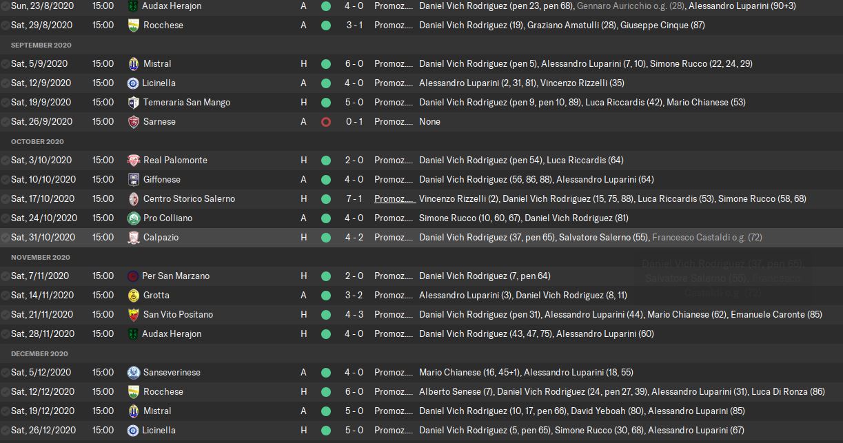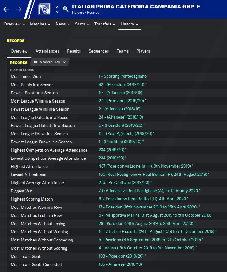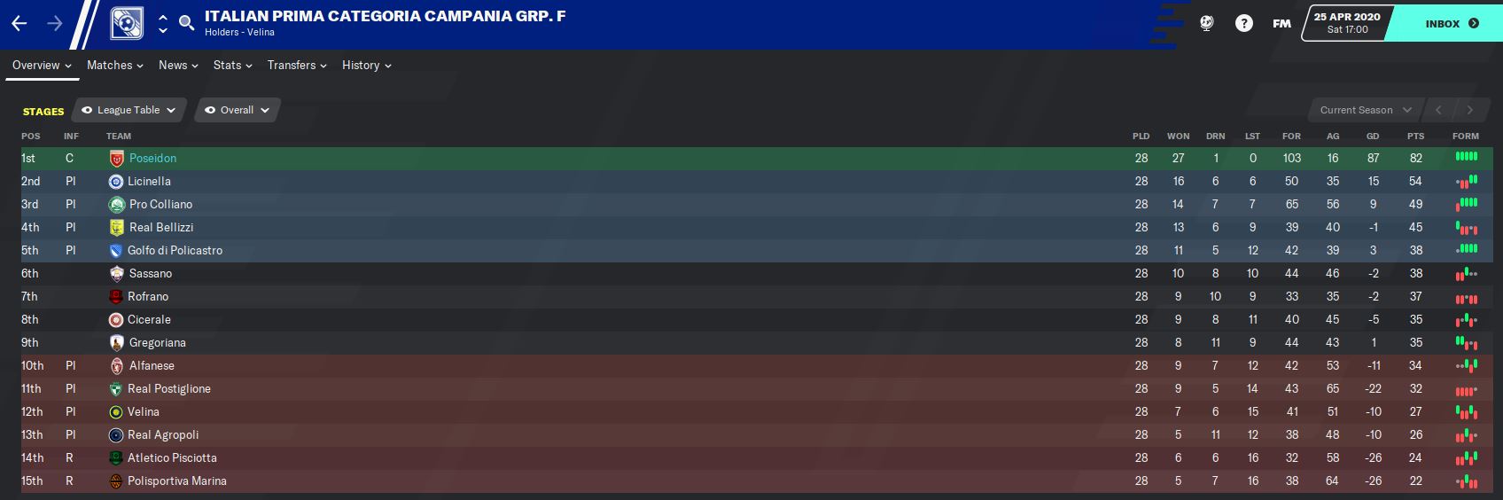 Apparently the other teams aren't that active during the transfer window and remain with rosters consisting mostly of the "Grey ones". We are the favorites to finish first and get promoted to the 6th tier, the Italian Promozione Campania Gruppo D.