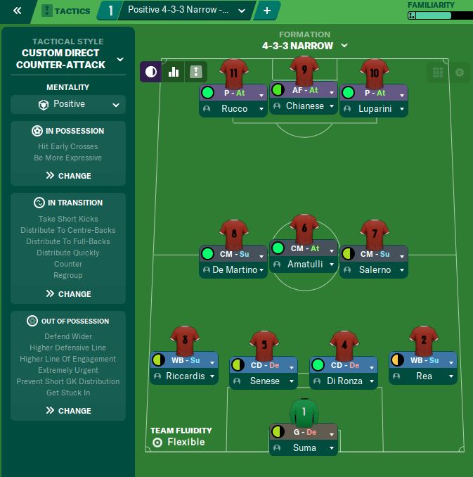 This is the formation I used that guided us to success. We'll test it and see if it's effective with better opposition as well. Chianese is my 4th striker. In general our top 3 was Rucco on the left, Luparini in the center and Vich Rodriguez on the right.