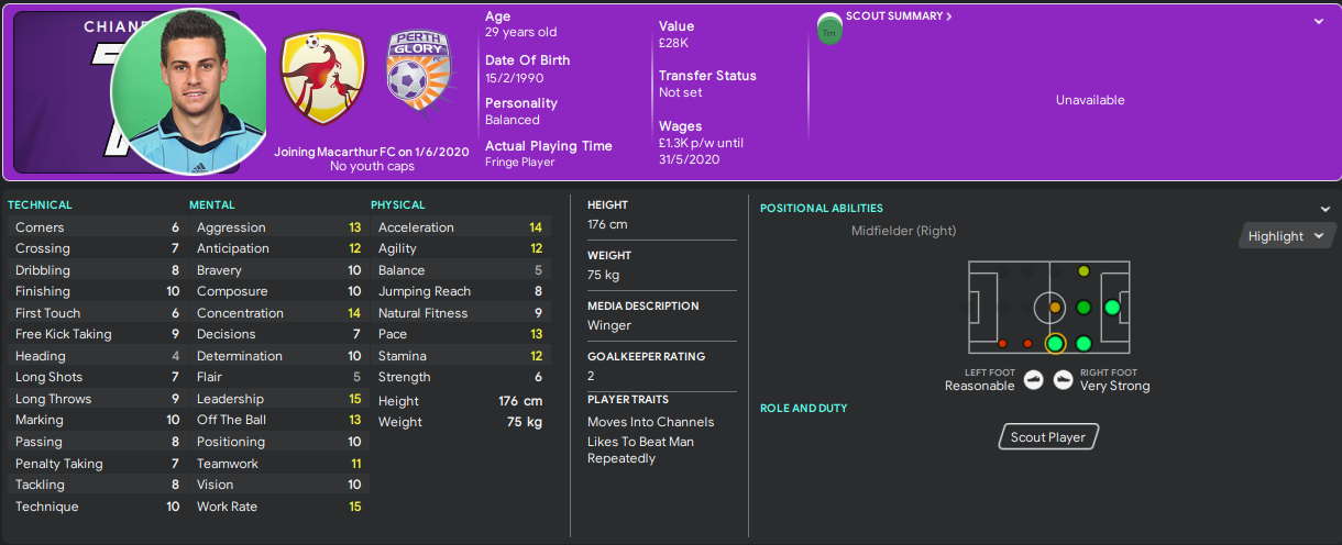 Decent player with some good attributes, and he still has much to give only being 28. His international experience both with his club and national team career should also bode well within the heart of the squad.