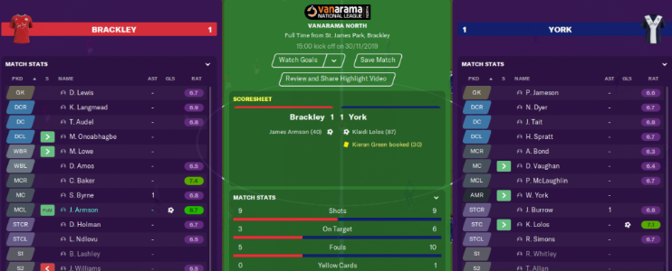My only thought for such a horrendous performance is that I brought in 3 loan signings in quick succession before that game. I won’t be making that mistake again. The result also loses our unbeaten run but it was the performance that was most disappointing.