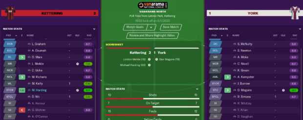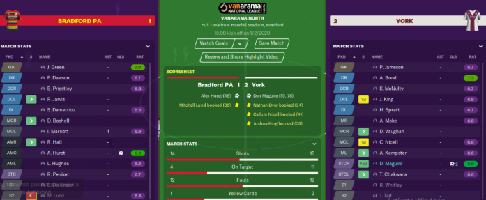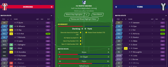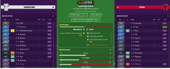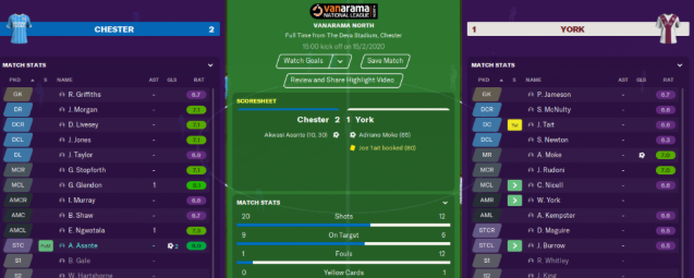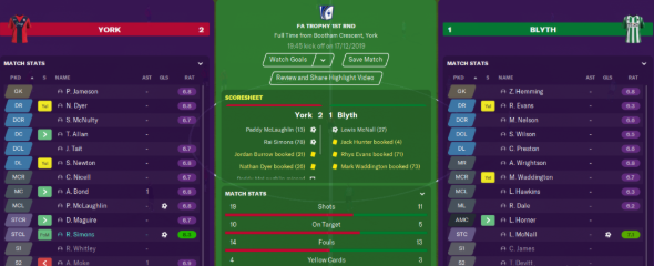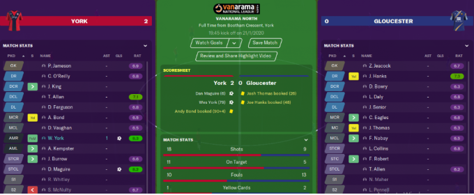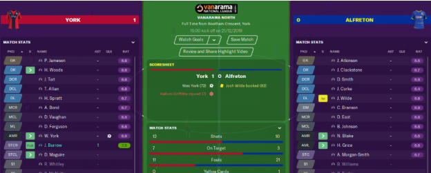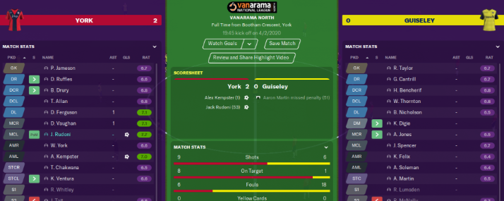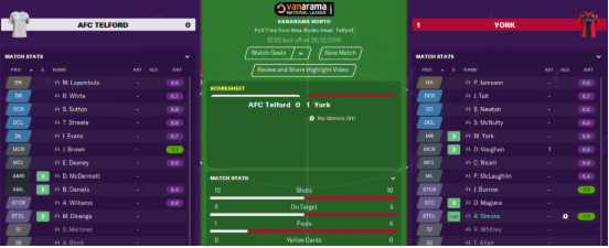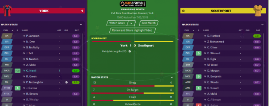 York scores with a scissor kick from the edge of the box. We go on to win 2-0. Our first league win in 4 and it's much needed!