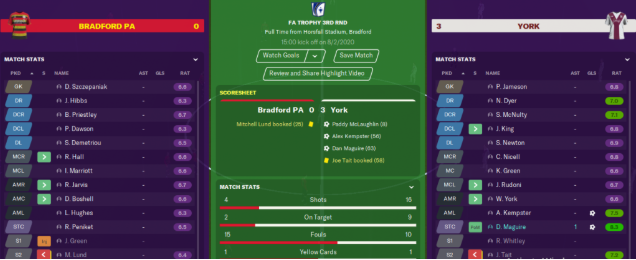 Bradford PA away. Is it too much to want a home game now and again? They are bottom of my league whilst we are top. If