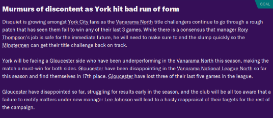 This form is not good and I will have to think about how to improve this. While we are going through this slump, I get an email telling me that as we haven't won in 3 games, the fans are getting a bit grumpy. We are